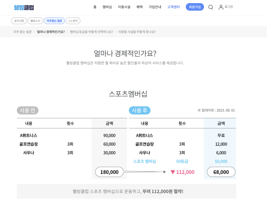 웰빙클럽 이용 안내사항은