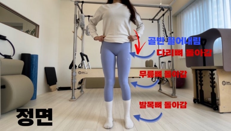 발바닥이 무너짐 = 발목 안쪽으로 돌아감 = 무릎도 안쪽으로 돌아감 = 다리뼈 안쪽으로 돌아감 = 골반 아래로 끌어당김 = 골반 내려감 = 어깨 좌우 높낮이 불균형